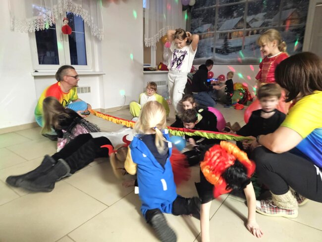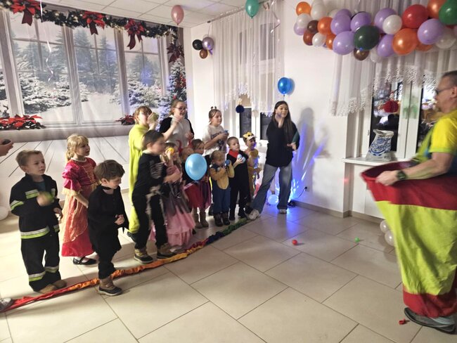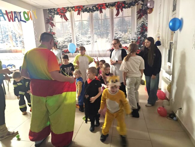 Zabawy, dobrego humoru i radości było co niemiara. W trakcie karnawałowych zabaw dzieci miały zapewniony poczęstunek.