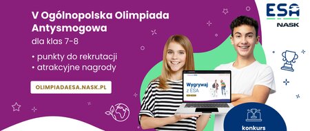 Zachęcamy uczniów klas #VII - VIII szkół podstawowych do udziału w V Ogólnopolskiej Olimpiadzie Antysmogowej, organizowanej przez Państwowy Instytut Badawczy NASK. Na zgłoszenia uczestników organizatorzy czekają do 13 marca br. Olimpiada odbywa się pod honorowym patronatem Ministra Edukacji, Ministerstwa Cyfryzacji oraz Ministerstwa Klimatu i Środowiska.