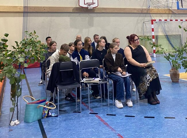 W wydarzeniu wzięły udział zaproszone osoby: radna Powiatu Bydgoskiego p. Mariola Górecka, dyrektor Zespołu Szkół w Ostromecku, p. Krzysztof Wolski, dyrekcja szkoły oraz nauczyciele i uczniowie klas VII i VIII.