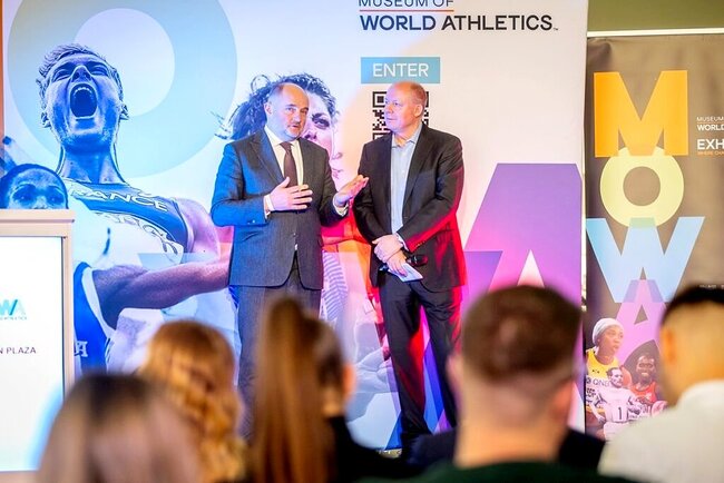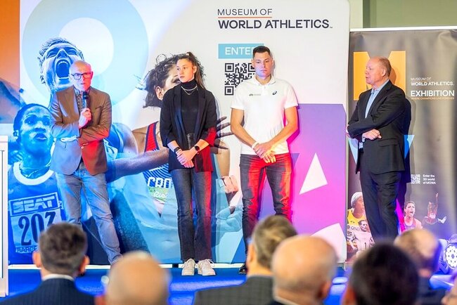 – To muzeum istnieje w świecie realnym – teraz tutaj w Toruniu, ale też w świecie wirtualnym. Dostęp do platformy cyfrowej muzeum można uzyskać ze strony World Athletics)  – wyjaśniał dyrektor MOWA Chris Turner. – Znajduje się tutaj wiele artefaktów, ale też pokazuje  kontekst w jakim mistrzowie lekkiej atletyki zdobywali swoje medale i bili rekordy. Na ścianie wind polecam  plakat pokazujący kobiety i mężczyzn w soku wzwyż oraz skoku o tyczce. Ten plakat jest naturalnej wysokości i najlepiej uświadamia jakie wysokości pokonywali lekkoatleci zdobywając rekordy.