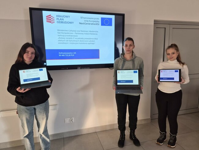 Inwestycja: „Wdrażanie inwestycji C2.1.2 Wyrównanie poziomu wyposażenia szkół w przenośne urządzenia multimedialne – inwestycje związane ze spełnieniem minimalnych standardów sprzętowych, wskaźnik C15G Nowe komputery przenośne (laptopy, laptopy przeglądarkowe i tablety) do dyspozycji uczniów”.