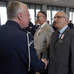 - (…) Szanowni Państwo, w pierwszych słowach chciałem Wam podziękować za to, że przyjęliście moje zaproszenie na uroczystość. Uważam, że w obecności sztandaru naszego garnizonu osoby szczególnie zasłużone i o najdłuższym stażu służby i pracy powinny być godnie żegnane. I dzisiaj się to ziściło. Chciałbym, żeby ten rodzaj pożegnań towarzyszył nam w przyszłości. (…) Chylę czoła przed Waszą służbą i pracą. Chylę czoła przed Waszymi osiągnięciami. (…) Dziękuję i życzę wszystkiego dobrego.