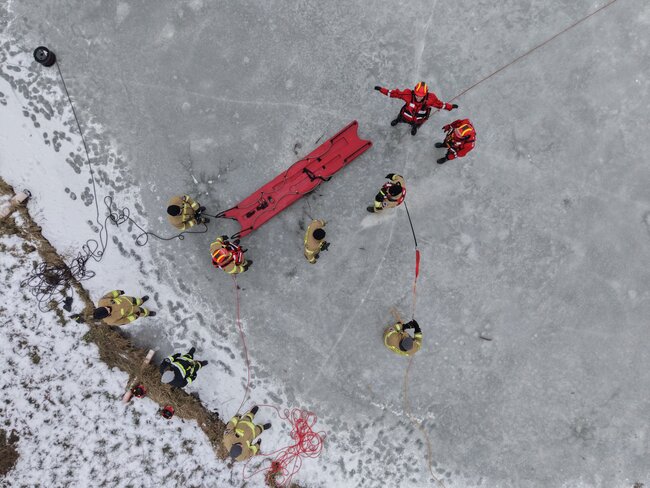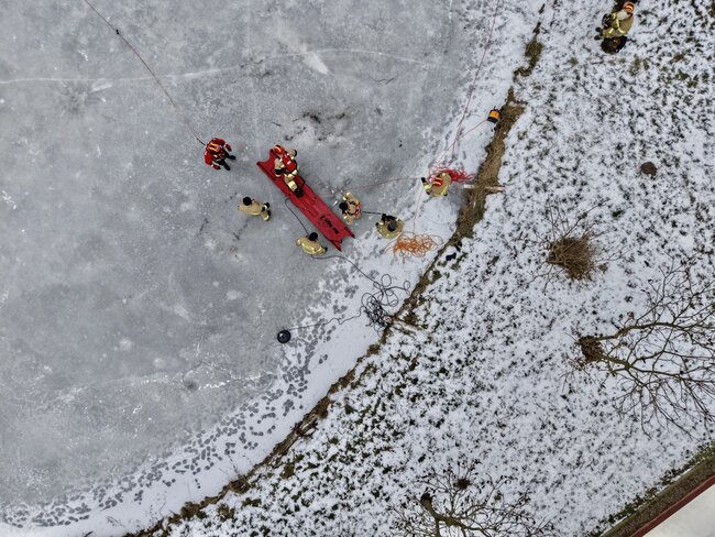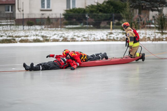 Pogoda ostatnio kapryśna, dlatego strażacy przygotowywali się w szczególności do podejmowanie poszkodowanego z wody. Dzieląc się krótką relacją na portalu społecznościowym, zaapelowali o rozwagę. - Zmienne temperatury powodują, że lód może miejscami być słabszy, a wychłodzenie następuje bardzo szybko odbierając siły do walki. Nigdy nie wchodźcie na lód nie będąc w zasięgu wzroku innych - poinformowali strażacy z OSP Gościeradz.