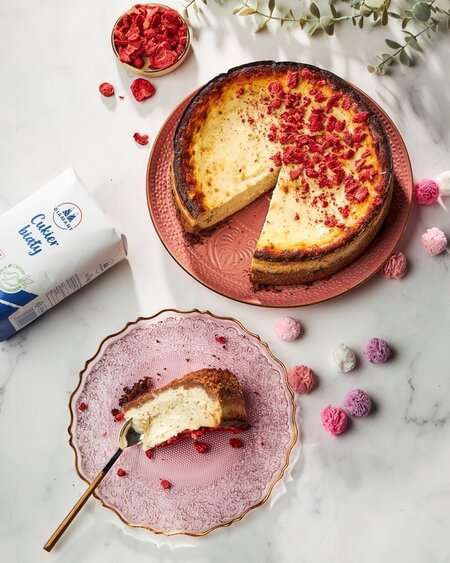 Palone masło nadaje masie serowej delikatnie orzechowy, lekko karmelowy charakter, wyraźnie odróżniający ten sernik od jego klasycznych wersji. Istotnym składnikiem przepisu jest także Cukier Drobny DIAMANT, który nadaje słodycz i tworzy gładką, jednolitą strukturę ciasta. Całość uzupełnia rozpływający się w ustach, kruchy spód. Wystarczy chwila spokoju, ulubiony kubek pełen ciepłej kawy lub herbaty, by zwolnić tempo i po prostu cieszyć się deserem.