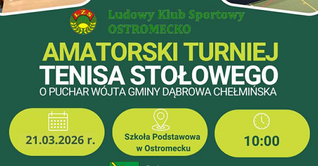 Regulamin amatorskiego turnieju tenisa stołowego o puchar Wójta Gminy Dąbrowa Chełmińska 21.03.2026 r.