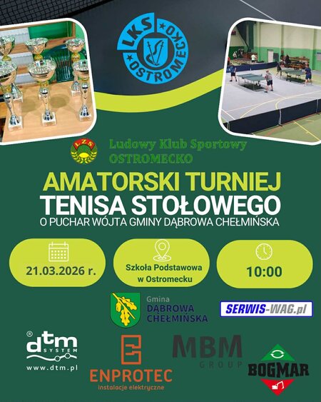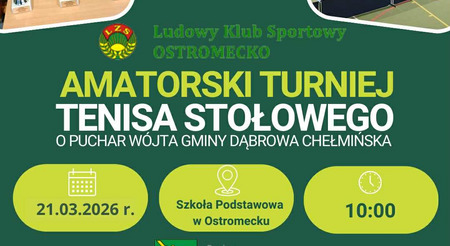 Regulamin amatorskiego turnieju tenisa stołowego o puchar Wójta Gminy Dąbrowa #Chełmińska 21.03.2026 r.