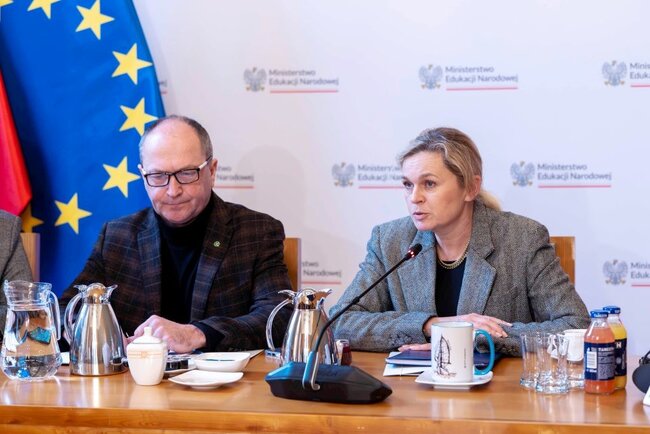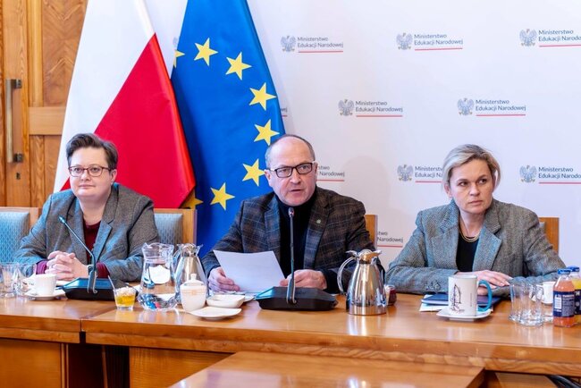 Wczoraj w Ministerstwie Edukacji Narodowej odbyło #się spotkanie uzgodnieniowe z przedstawicielami oświatowych związków zawodowych na temat projektu rozporządzenia w sprawie wysokości minimalnych stawek wynagrodzenia zasadniczego nauczycieli w 2026 r. Udział w spotkaniu wzięła Minister Edukacji Barbara Nowacka oraz pozostali członkowie Kierownictwa.