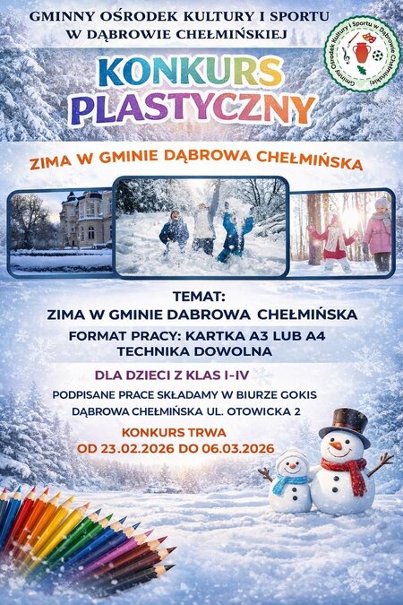 Zima powoli się kończy..., ale zatrzymajmy ją na papierze! Gminny Ośrodek #Kultury i Sportu w Dąbrowie Chełmińskiej zaprasza do udziału w konkursie plastycznym.