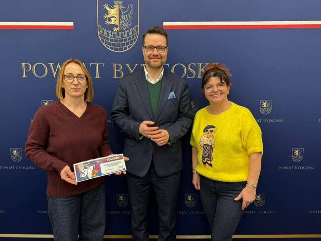 W poniedziałek w Starostwie gościliśmy wyjątkowe Panie. Odwiedziła nas Anna #Kubas - zwyciężczyni licytacji Wielkiej Orkiestry Świątecznej Pomocy w Gminie Dąbrowa Chełmińska razem z Sołtys Sołectwa Dąbrowa Chełmińska Zdzisławą Zembrzuską.